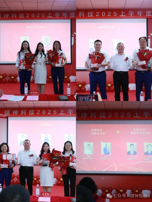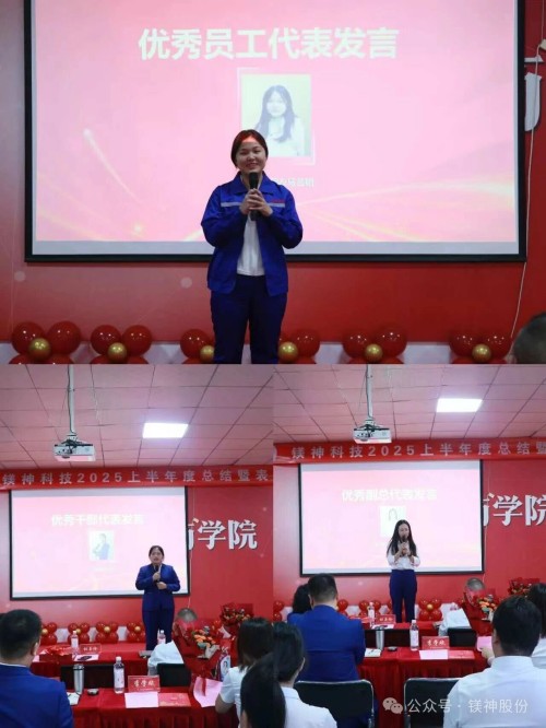 他们在平凡的岗位上书写不凡,是匠心筑梦的践行者、是协同作战的排头兵,更是全体镁神人的精神标杆。主持人宣读2025年上半年度优秀员工、优秀干部名单,刘江花、马银青等获奖者依次上台。