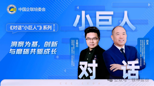 从5000元创业到资产8.5亿元的集团公司,从个体业务员到行业领军者,从国内市场到全球布局,镁神科技的成长之路,是中国民营中小企业转型升级的生动缩影。此次《对话“小巨人”》的分享,不仅展现了孙文董事长的远见卓识与企业家担当,更彰显了企业家的5个核心能力:洞察未来的前瞻力、颠覆以往的创新力、捕捉机遇的决断力、面临危机的应变力、商业伦理的约束力,同时也体现镁神科技的初心与使命。未来,镁神将继续以创新为翼,以人才为基,在高端镁质新材料的赛道上勇往直前,书写更多属于“中国小巨人”的传奇篇章!从中国到“一带一路”,从中国专精特新“小巨人”,到中国制造单项冠军,到世界级氧化镁单项冠军,到世界一流企业的独特创新之路!